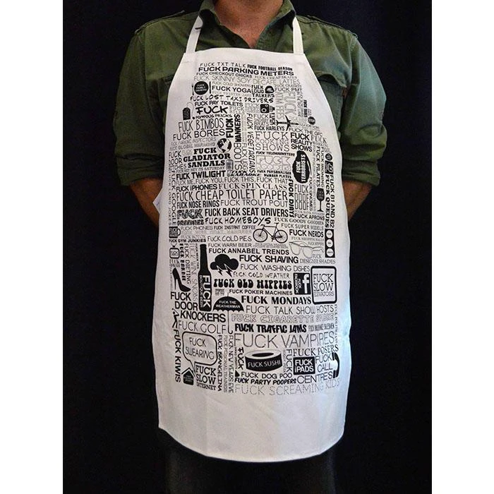 It tends to be an old adage that chefs are known for having a bit of an attitude! They’re down in the dumps and a bit of a grump. Is that you? Well great we say because we’ve got the apron to suit the mood. If you’re unimpressed by vegetarians, speed cameras and reality TV then this is the smock for you! Convey how you feel all whilst flipping a steak. Sushi, traffic jams and ipads?! Pfft, you’re a liker of very little. This very rude covering is definitely not for children, but you can certainly express what you think of kids while you are wearing it.