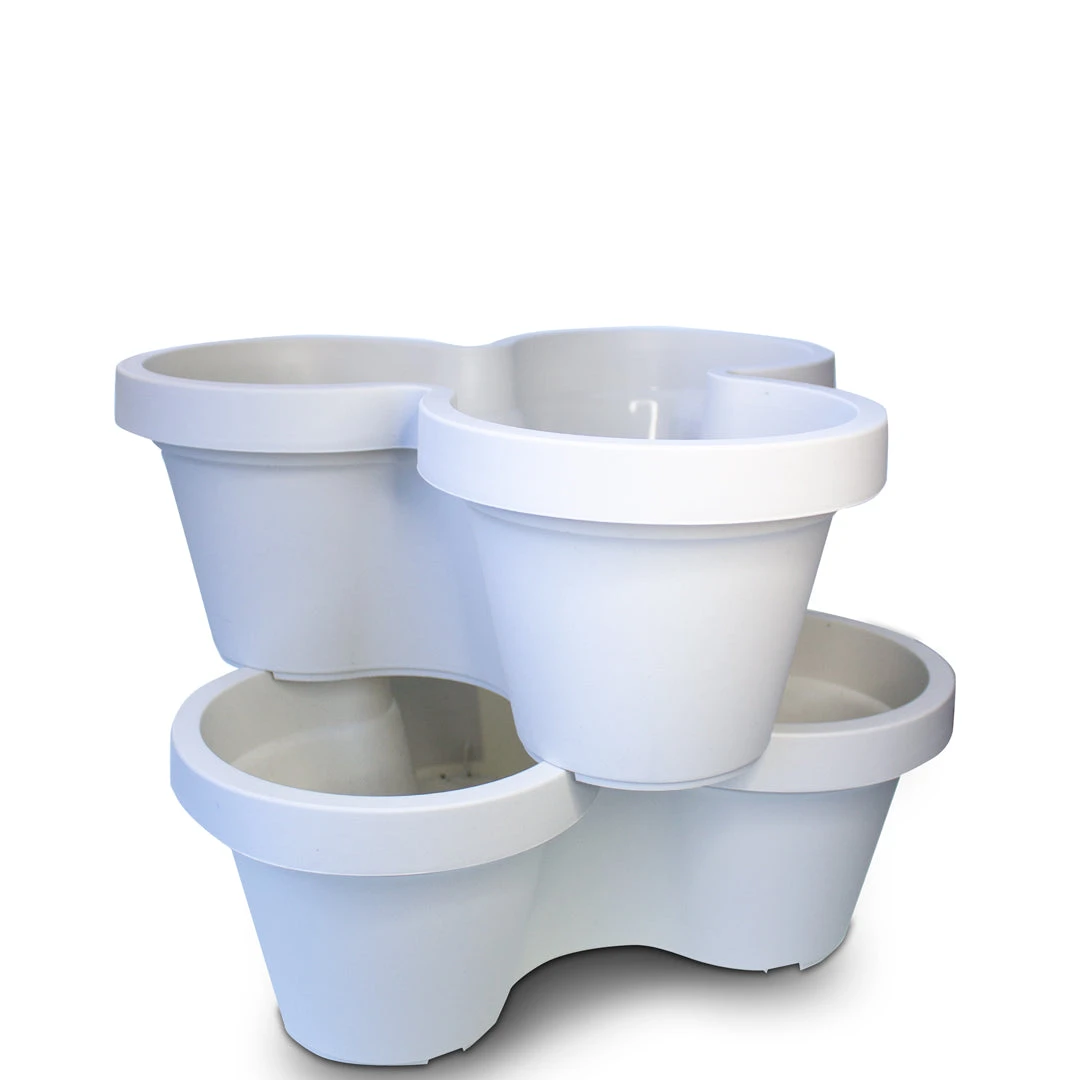 Purchase multiple planters and stack them on alternating orientation securely thanks to grooves in the bottom. Each plant can live freely in the negative space of the planter above and you can stack as many as you’d like!