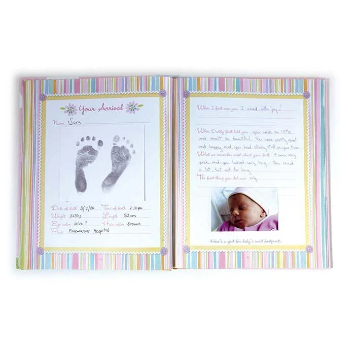 The kit contains 1 non-toxic inkless wipe and 4 treated papers. Simply wipe the child’s hands and/or feet with the wipe and press onto the magical paper, and before your very eyes appears their print!