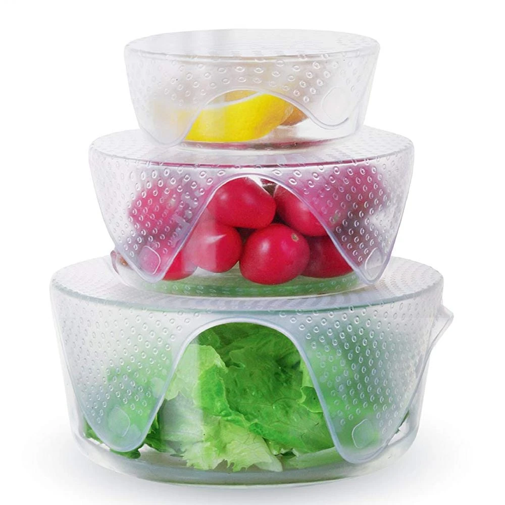 Your pack of Silicone Food Wraps includes 4 Silicone Food Wraps: 1 Small, 2 Medium and 1 Large size so you’ll always have a wrap to fit whatever container you’re using. The best part? They stretch to more than twice their size!Â