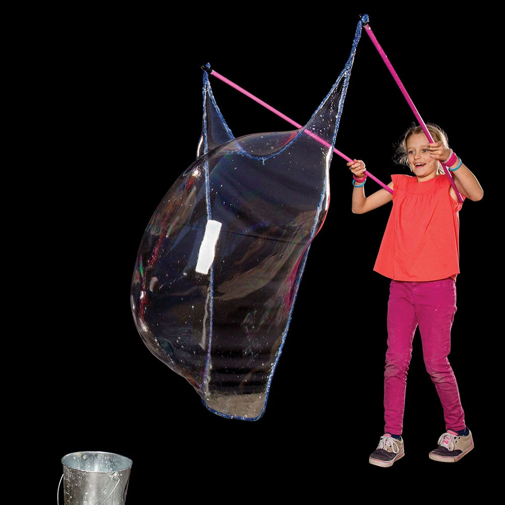But with this incredible kit, we’re taking the already magical bubble experience to a whole new level. None of these little baby bubbles, we’re looking for something BIGGER.Â