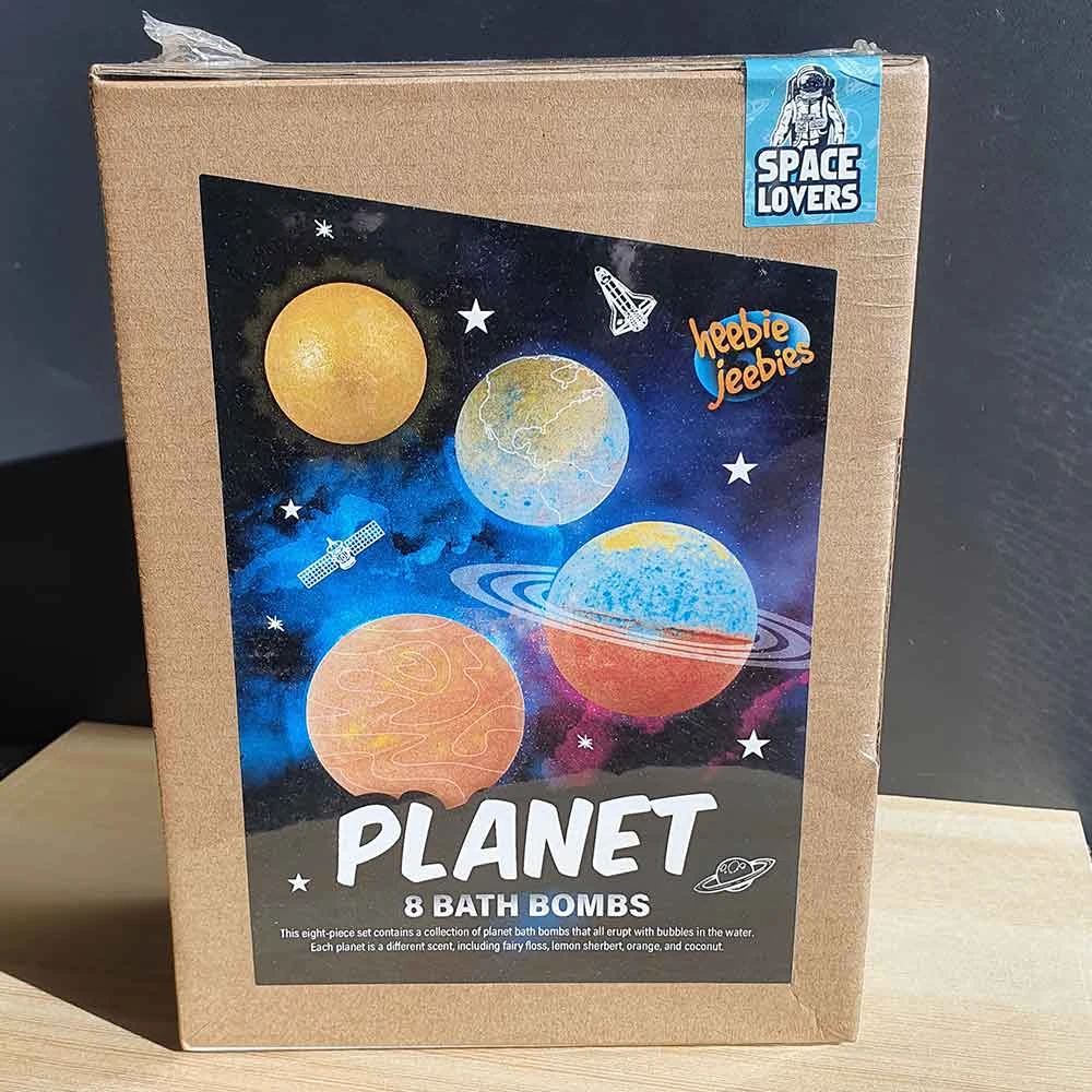 It comes with 8 bath bombs, each one themed around a different planet. There’s the Earth, the Sun, Jupiter and Saturn. They’ll make your bath smell sweet with a range of different scents, plus you can watch the colours swirl in the tub.