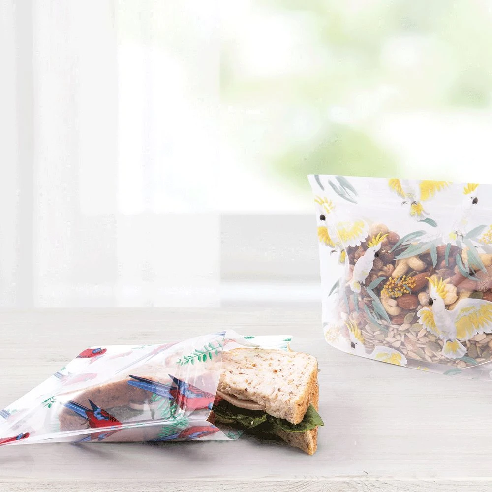 Store snacks, sandwiches and a whole lot more! They come in two sizes, large or medium, to suit your different needs and each set of 8 comes with two beautiful designs featuring native Australian birds. One has colourful rosellas and the other cheeky cockatoos!