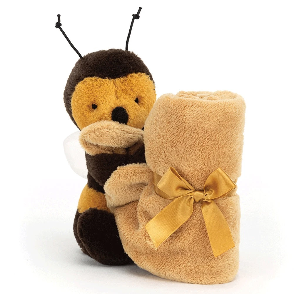 The only thing softer than this sweet bumblebee is the little golden yellow comfort blanket attached to him! It comes tied up with a gorgeous matching ribbon, and it’s the perfect companion for your snoozing bub.Â