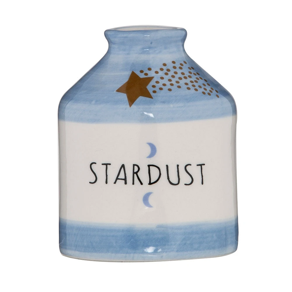 This sweet little porcelain vase looks like a jar of stardust, just the type of thing that powers a magical mum or your out-of-this-world bestie. It stands 10.5cm tall with a small 2.5cm opening perfect for stemmed flowers.Â