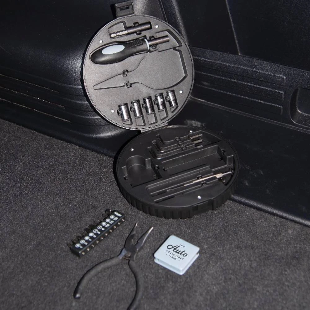 Tools such as pliers, screwdrivers and a measuring tape are just some of the useful tools in this convenient kit. You’ll be back on the road in no time!