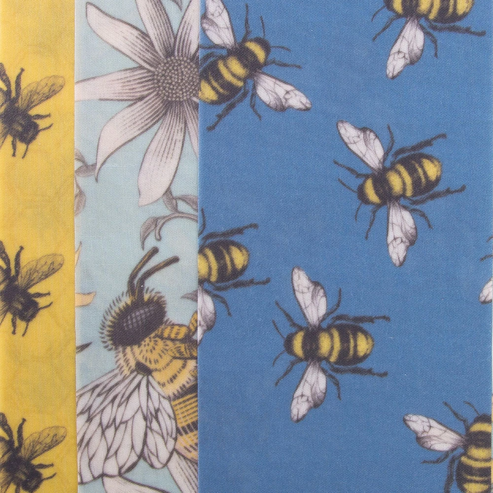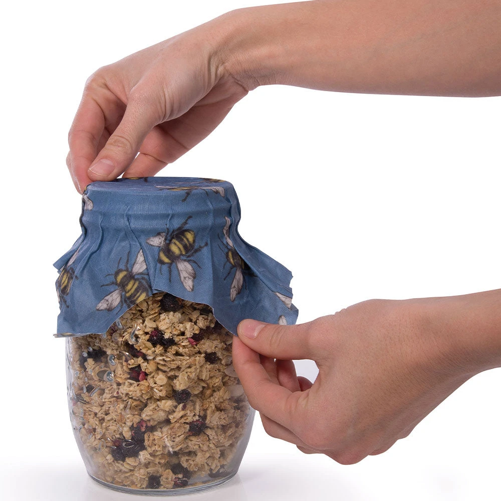 They come in 3 different sizes, each with a different print featuring little bees. Use them to cover your leftovers, wrap your sandwiches or covering cut fruit and vegetables.Â