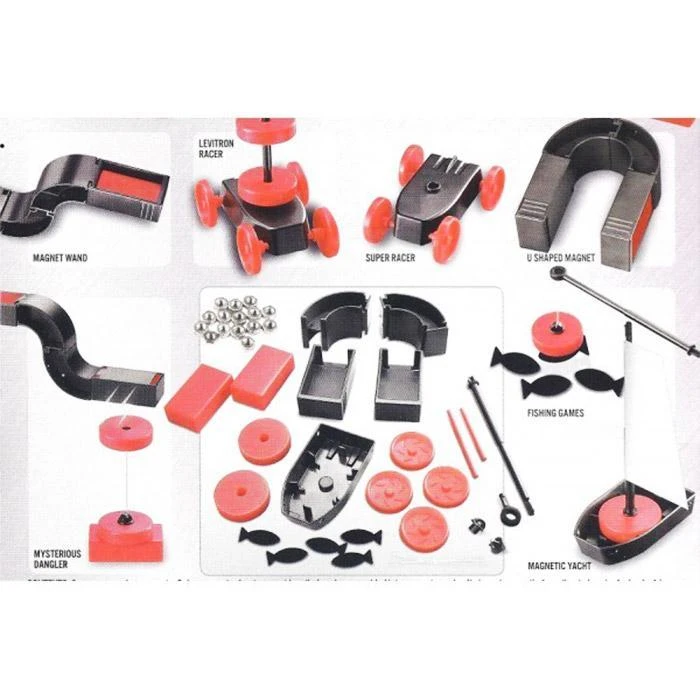 - Inclusions: 2 Super power bar magnets, 2 ring magnets, 1 set magnet handle, 1 Car/Boat chassis, 4 wheels, 1 long axle, 1 rod for fishing mast, 1 fishing rod joint, 2 ring magnet joints, magnetic fish, metal screw nuts, 1 roll of thread, detailed assembly and game instructions