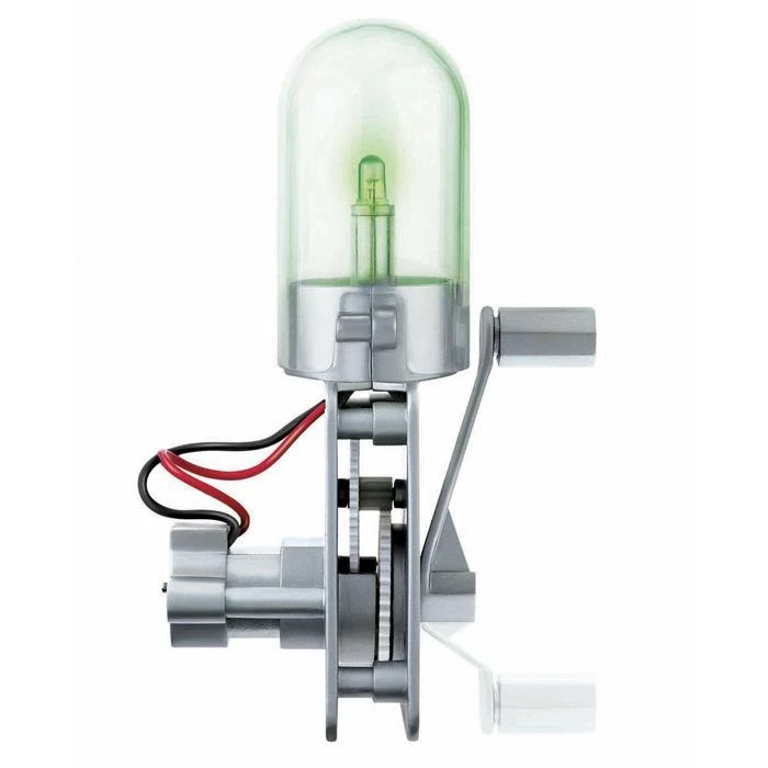 Thomas Edison and Nikola Tesla are the fathers of modern electricity, but who will be the next innovator? Will it be you? Now more than ever, the world needs sustainable green energy – and this kit teaches you how to make it. By turning a motor into a generator you can convert your own motion into electricity and power a lightbulb. It uses no battery and has no pollution – just green fun! It has even been selected by the University of Cambridge Science Festival because it’s so fun, educational and important.