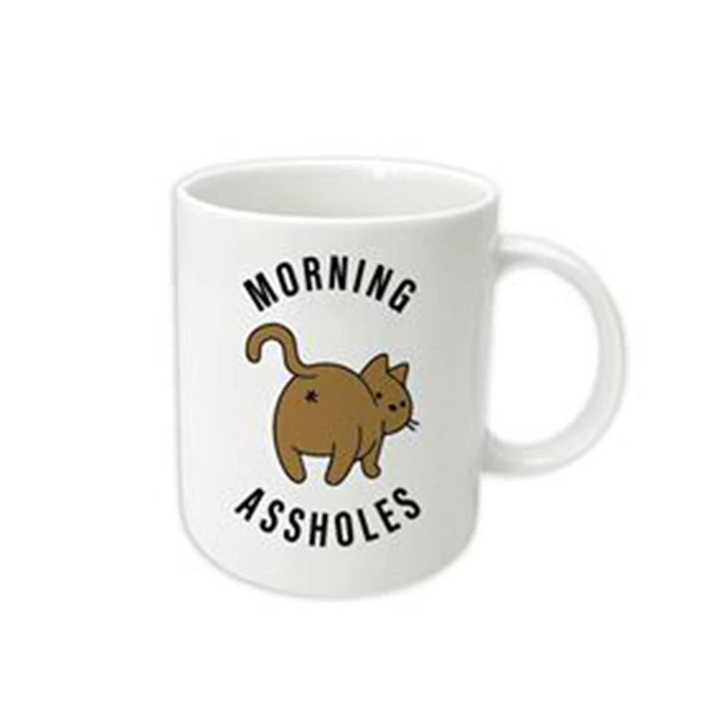 It’s the most cheerful “good morning” they can hope for before you’ve had your coffee! And the cat is pretty cute, even if it is flashing it’s… well, asshole!