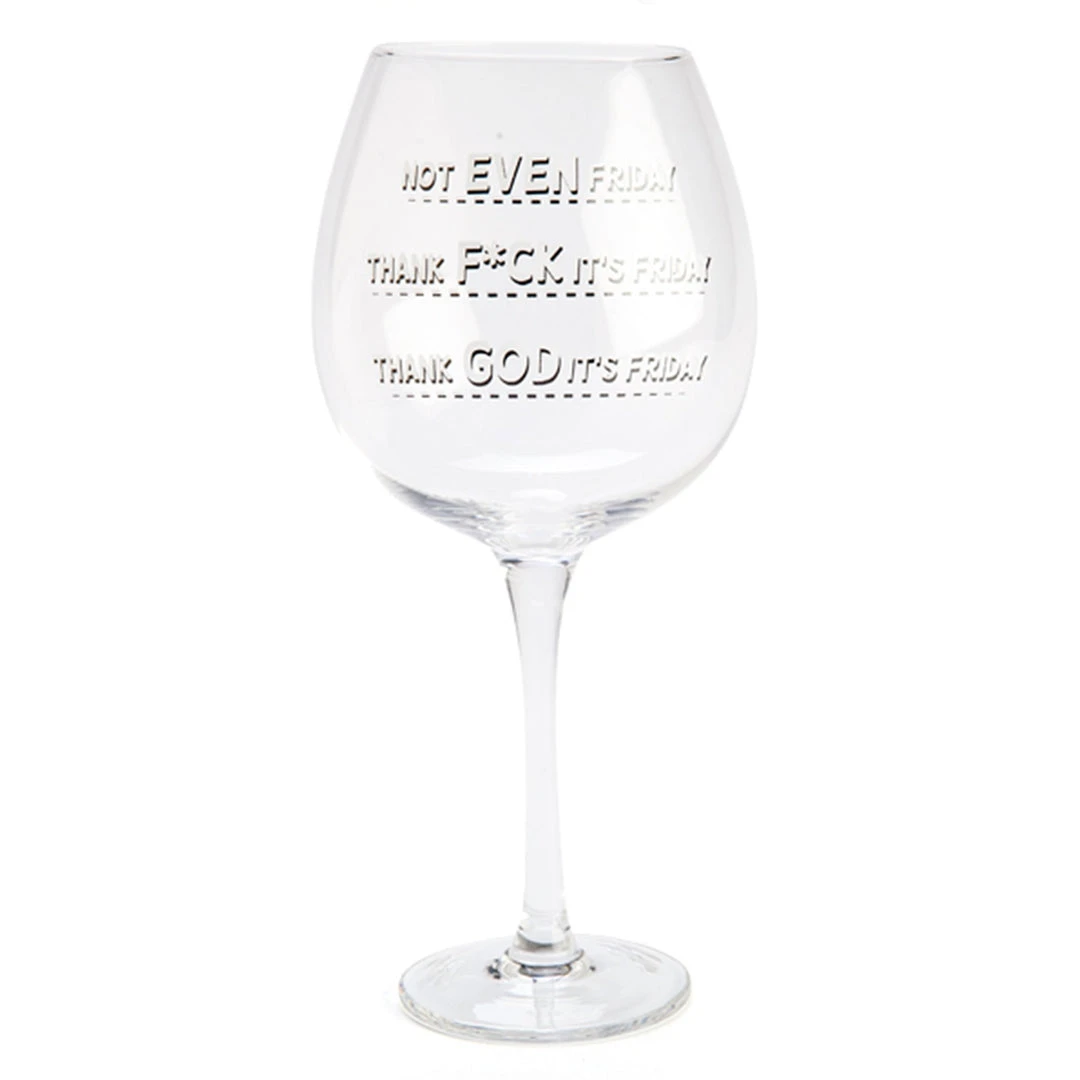 Boxed to be gifted, the Not Friday Wine Glass is a gift for wine lovers in love with Friday.