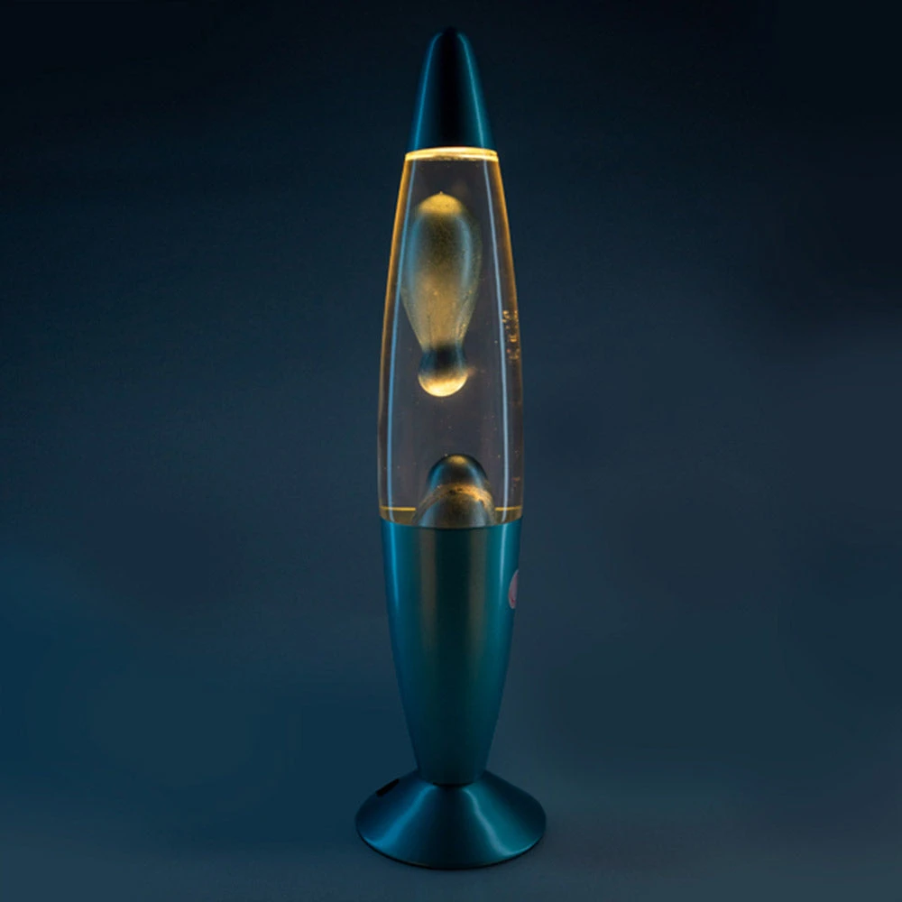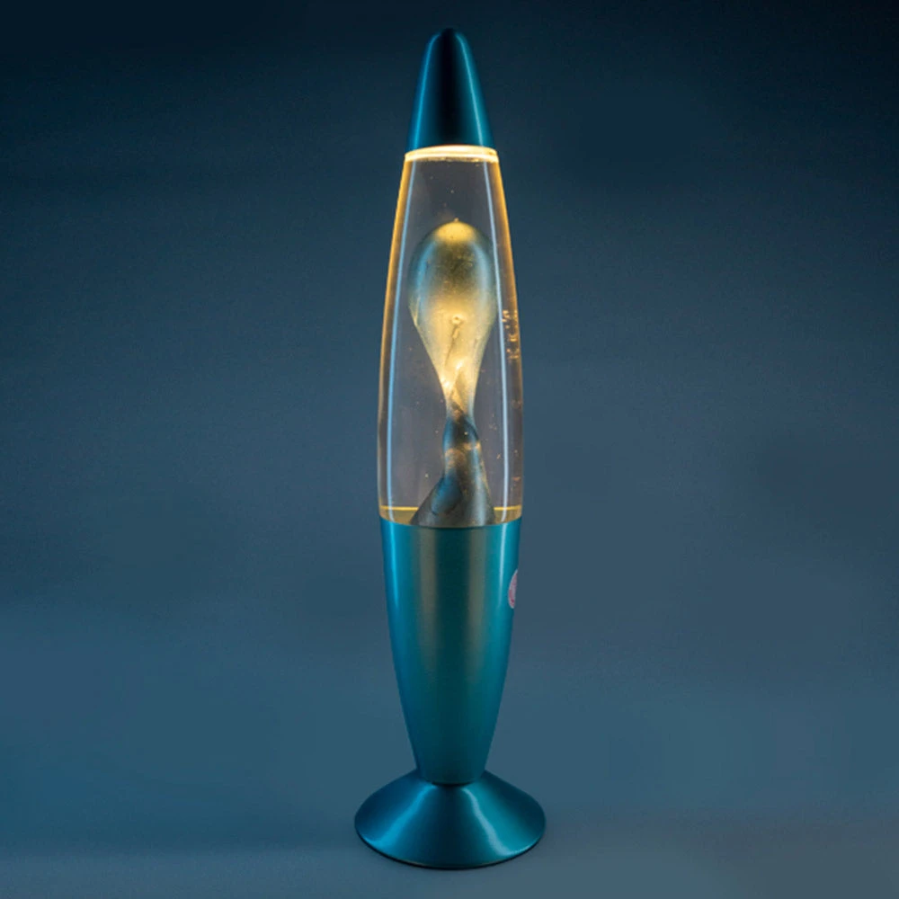Bubbles of shiny metallic ooze float this way and that inside your lamp, creating shadows and patterns on your walls when the lights are low. The space-age curves of the metallic blue casing give this lava lamp give an other-worldly feel, that’ll put you and your guests in a trance and calm your nerves.