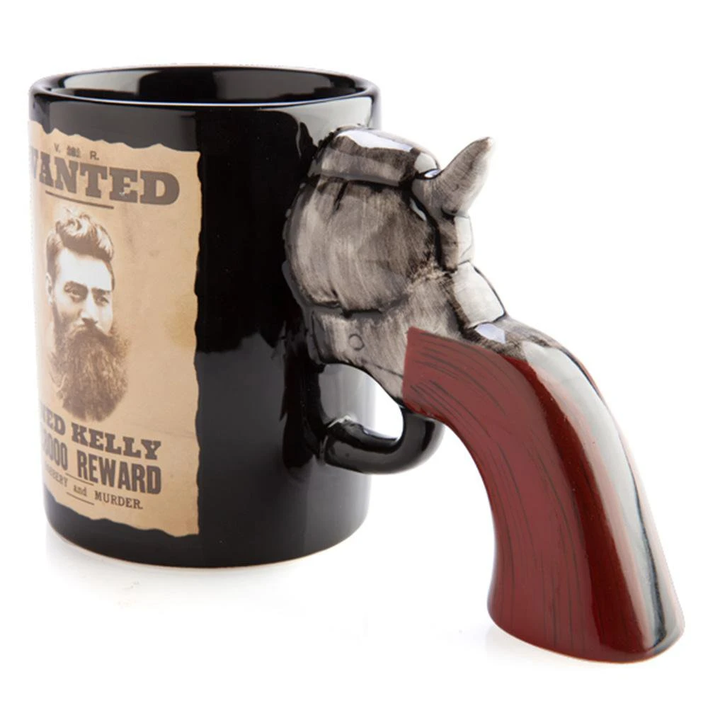 Our Ned Kelly Gun Handle Mug will make you feel like a dangerously cool bushranger gangster every morning. Fill it with your favourite brew, grab the sculpted gun handle, and sip. No one will want to mess with you. Everyone will want to be you.Â