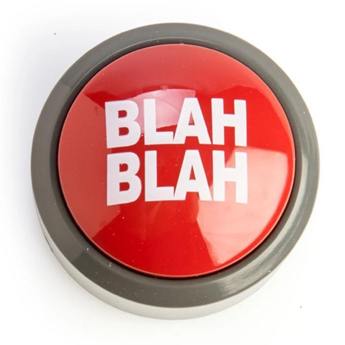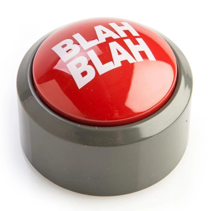 Simply press the Bla Bla Button and you’ll hear one of 8 different-yet-equally-hilarious variations of BLAH BLAH BLAH, accompanied by a bright red light to further emphasize the need for the bullsh#t to cease.Â