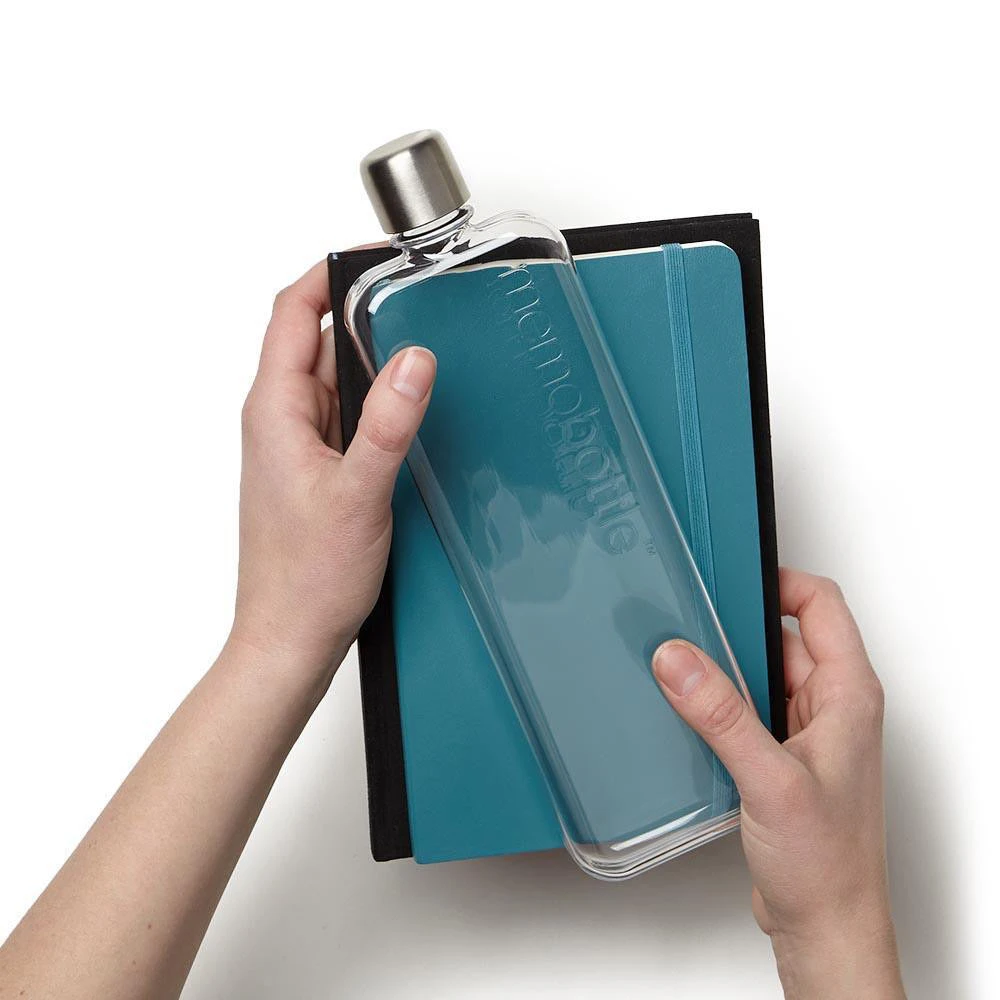The Slim Memobottle is a reusable water bottle that avoids the old fashioned, impractical designs and environmental irresponsibility of traditional water bottles. The slimline design is the perfect size to slip in next to your books in your handbag, backpack or laptop case.