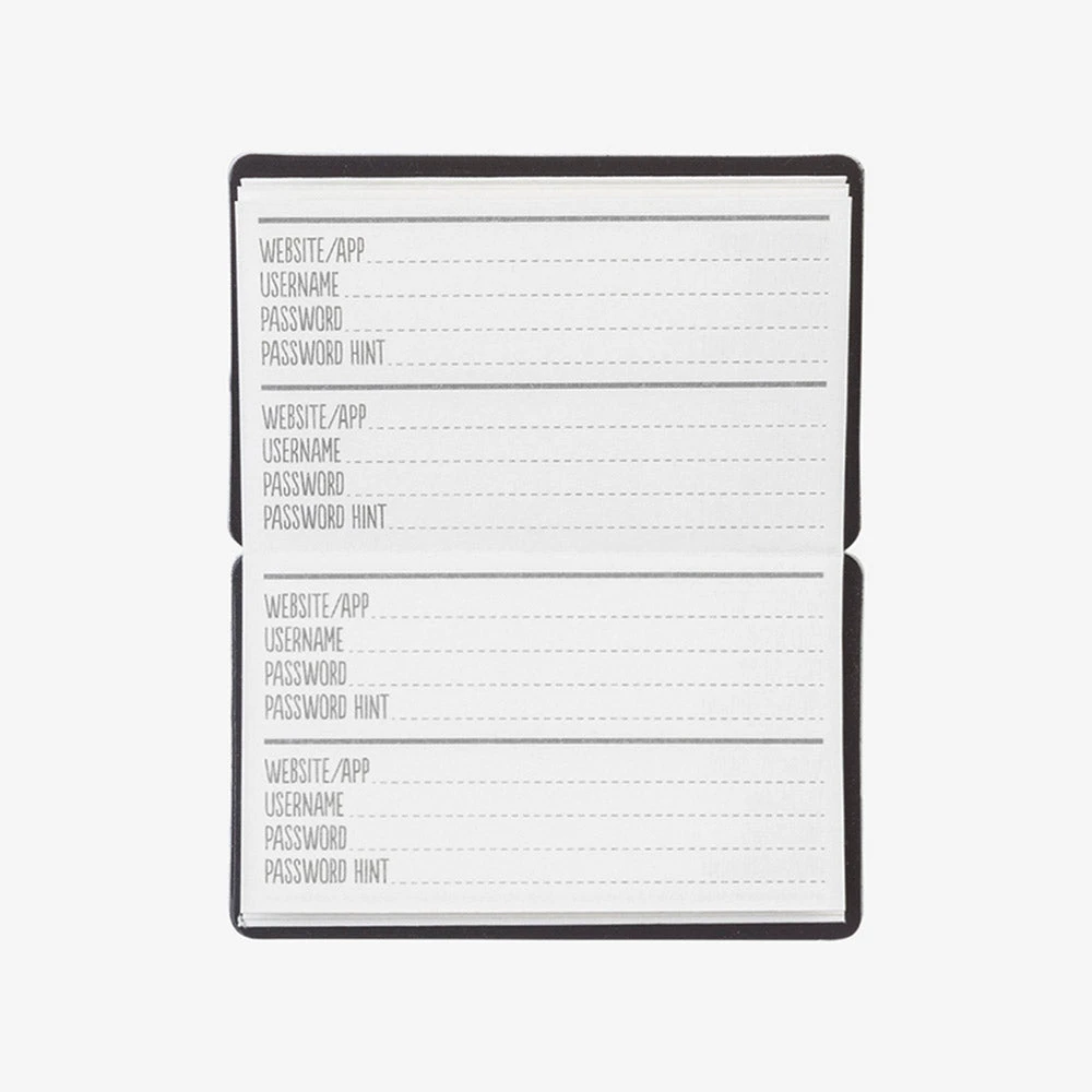This password keeper is here to help. You’ve got space to jot down log-in information for up to 36 different accounts so you’ll never need the “Forgot Password” link again!