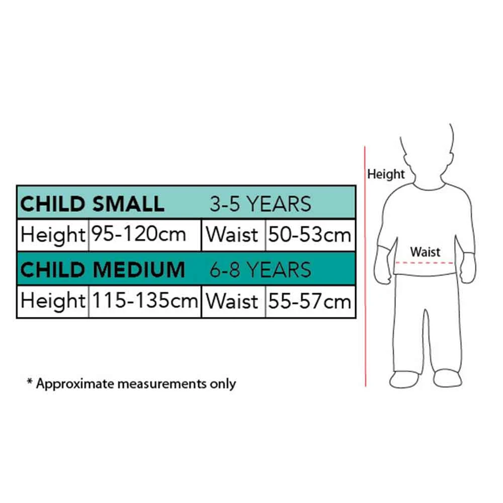 - Sizes:Â 3-5 years, 6-8 years (see size chart for more information)