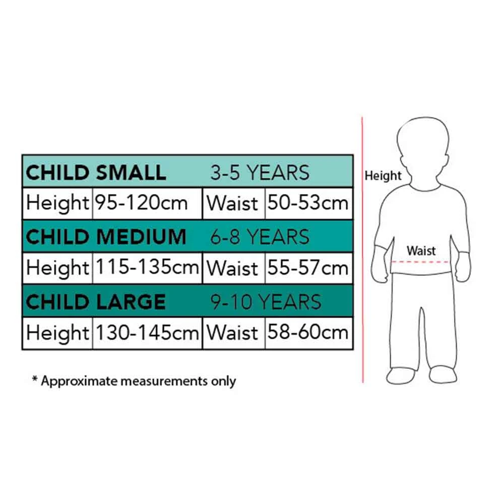 - Sizes:Â 3-5 years, 6-8 years (see size chart for more information)