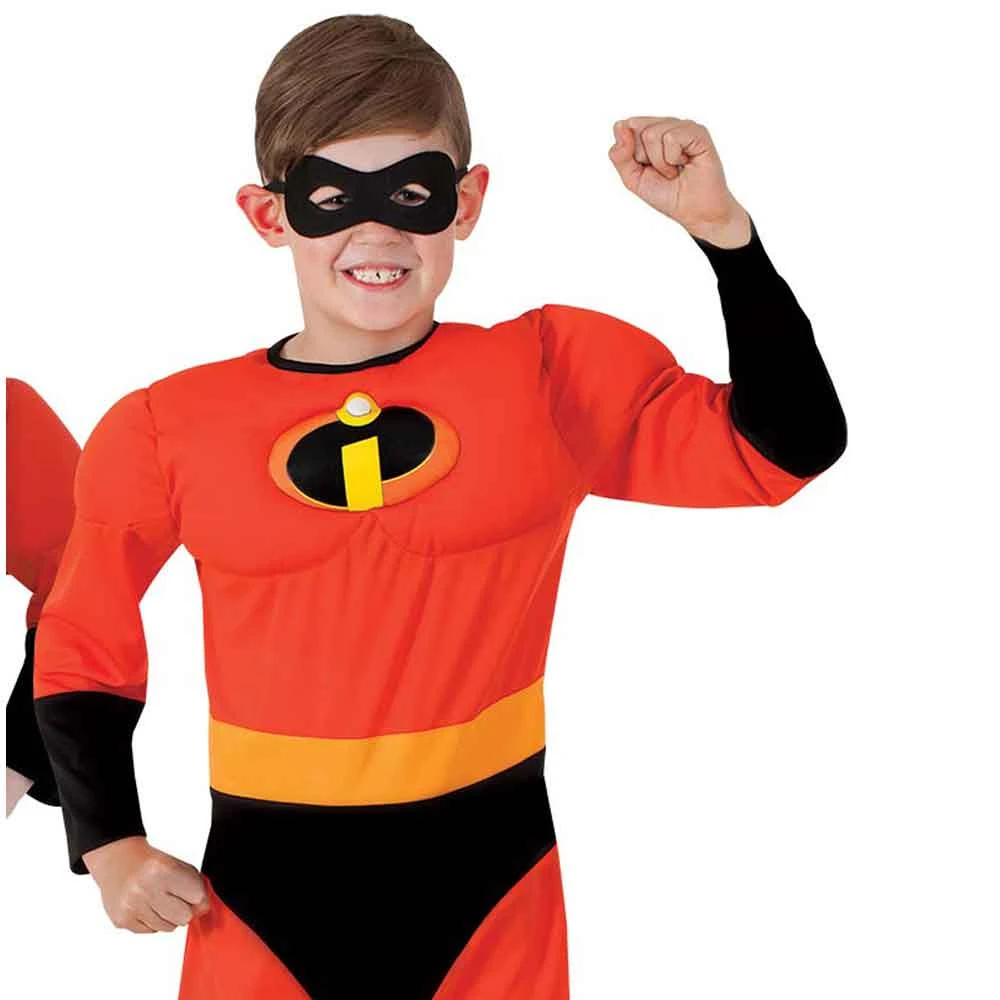 An officially licensed Disney product, you can be sure that this costume is the real deal. This all-in-one jumpsuit features a fibre filled chest and shoulders, as well as the Incredibles logo at the centre. Fitted with Velcro for easy wear. Complete with a black felt eye mask with cut out eye holes to see through.