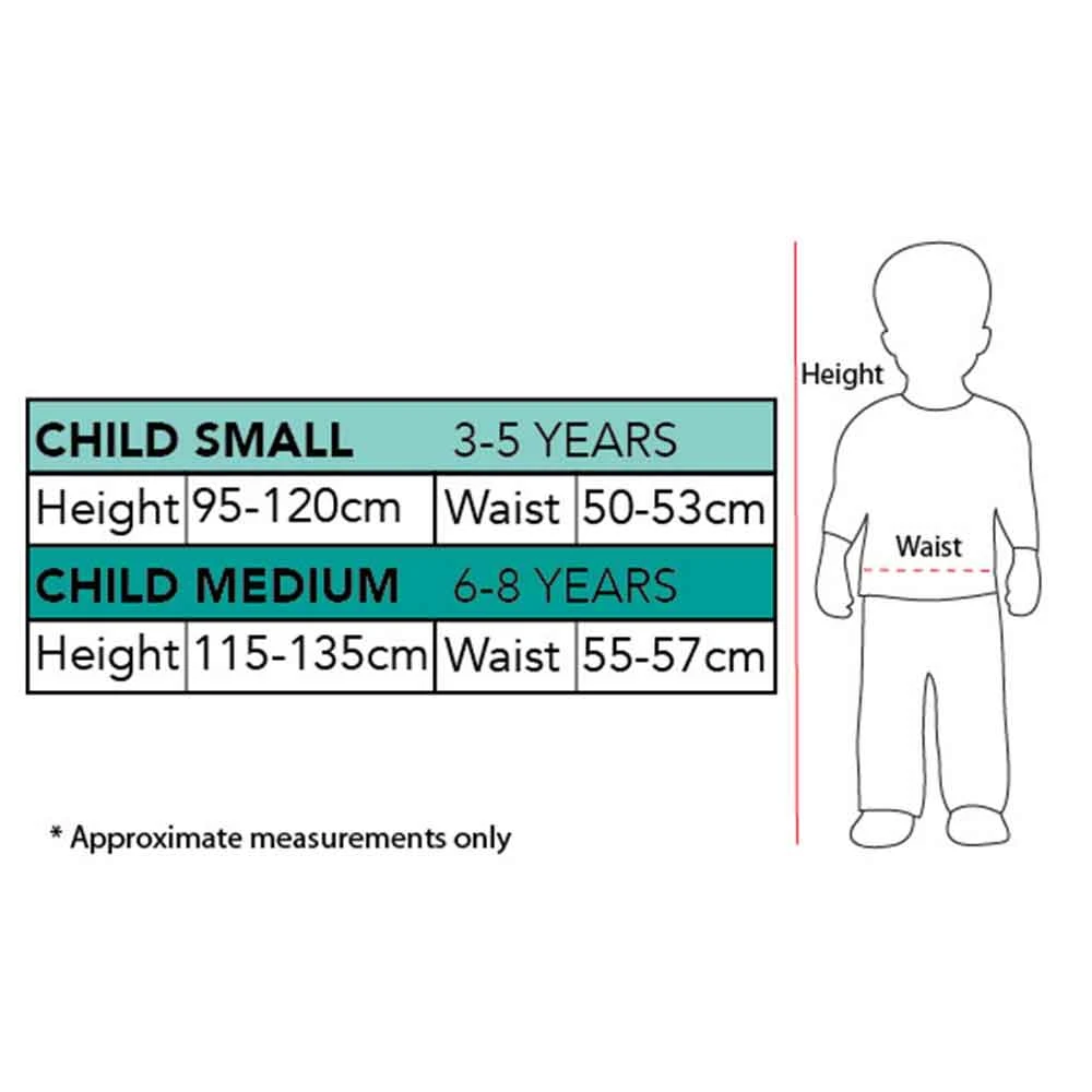 - Sizes:Â 3-5 years, 6-8 years (see size chart for more information)