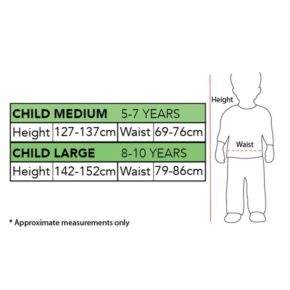 - Sizes:Â 5-7 years, 8-10 years (see size chart for more information)
