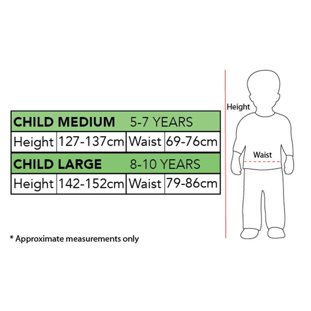 - Sizes: 5-7 years, 8-10 years (see size chart for more information)