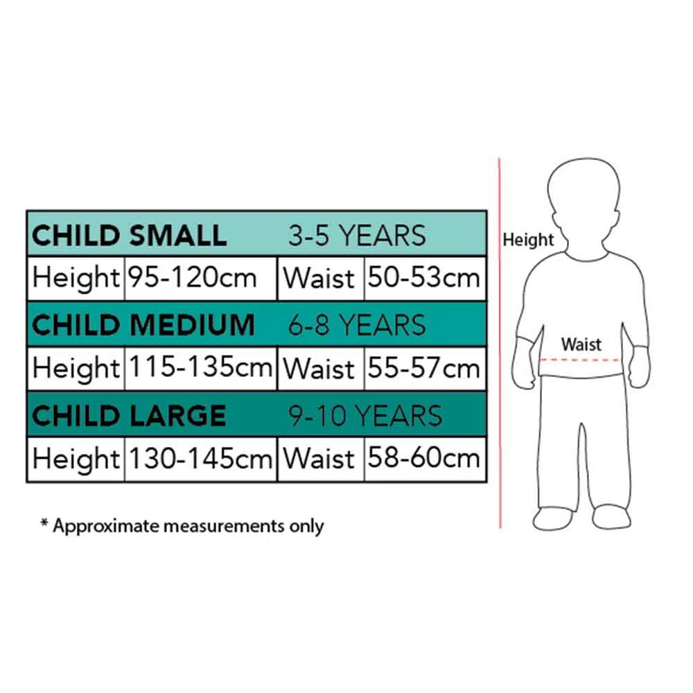 - Sizes: 3-5 years, 6-8 years, 9-10 years (see size chart for more information)