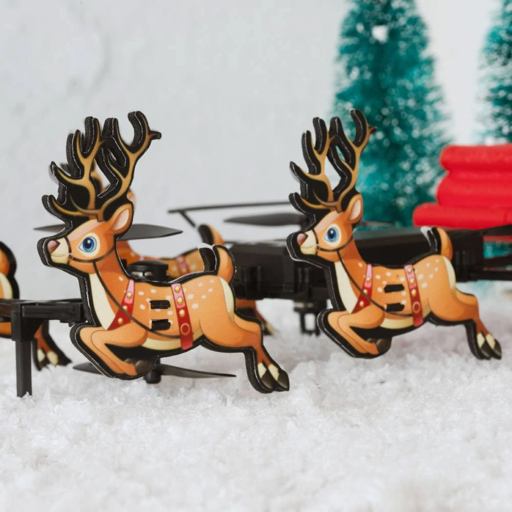 - Inclusions: Flying Santa, Transmitter, 4 x Reindeer Accessories, 4 x Spare rotors, Charging Cable, and Instruction Manual. 3 x 1.5V AAA battery required for transmitter (not included).