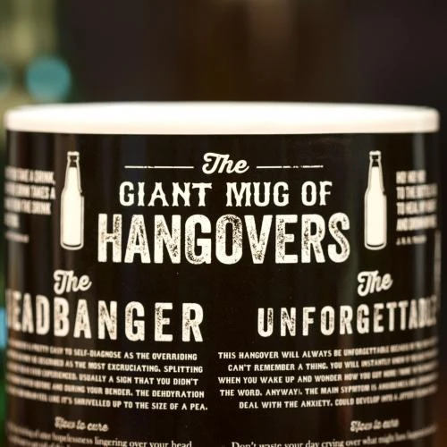 The Giant Mug of Hangovers has been specifically designed to assist hungover individuals with the identification and treatment of their hangovers.