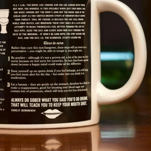 There you have it. The ultimate hangover-fighting mug – the Giant Mug of Hangovers & Cures – is truly the ultimate tool in the fight against the common hangover. It comes beautifully gift boxed, making it a useful novelty gift for booze-bingers.