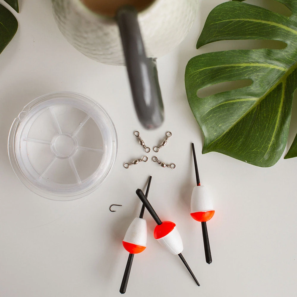 - Includes: Mug, fishing line, hook, 4 x swivels, 3 x lures