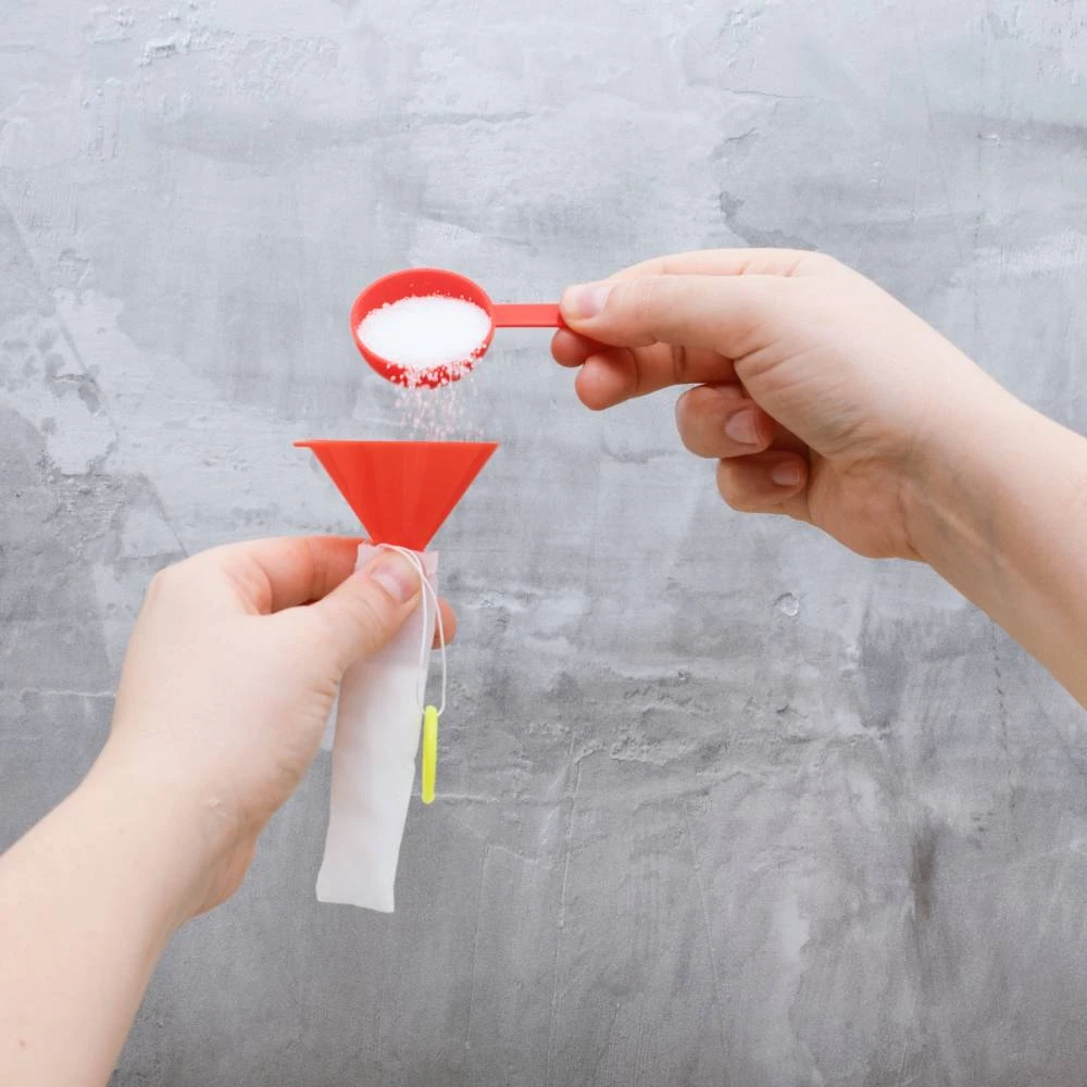 - Inclusions: 1 x Rocket Body, 3 x Rocket fins, 3 x Fin holders, 1 x Decorative Sticker Sheet, 3 x Double sided tape, 1 x Bowl, 1 x Funnel, 1 x Measuring spoon, 1 x Mixing stick, 1 x Net bag, 1 x Protective goggles, 1 x Baking soda pack, 1 x Citric acid pack, 1 x Instructions.