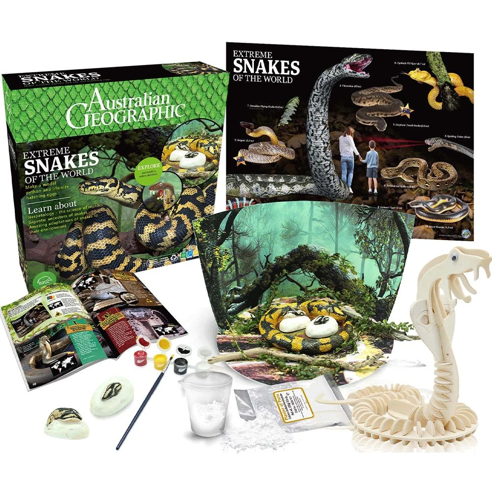Make yourself a life size plaster model of a python and some little snake eggs, then set it up as a diorama with the included backdrop. Next there’s a wooden 3D puzzle of a snake which you can build and then paint.Â