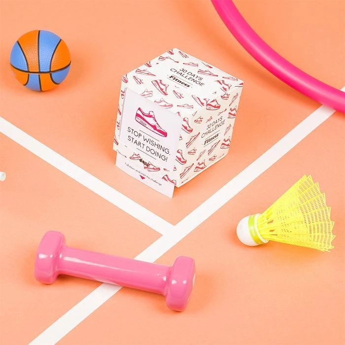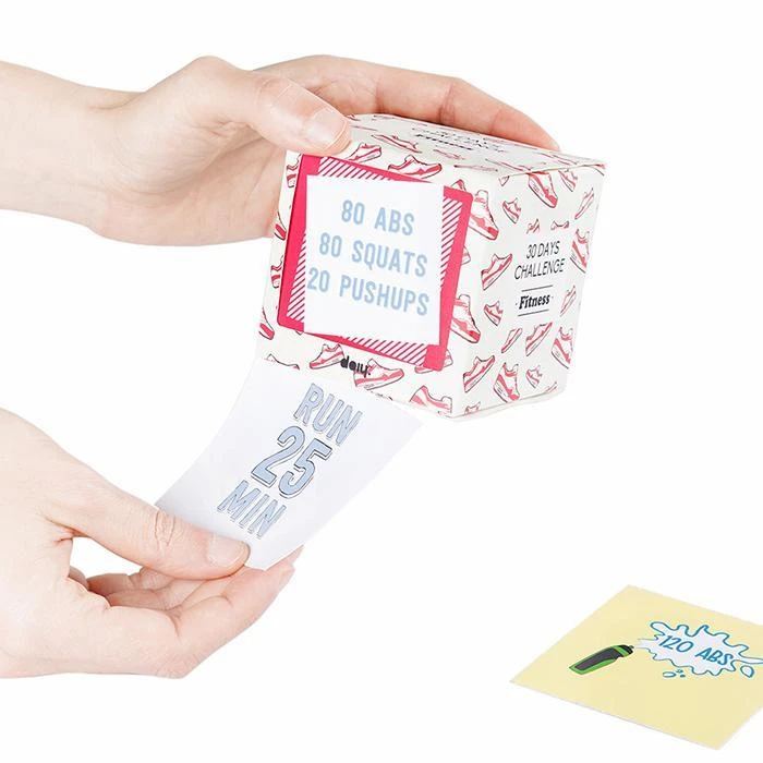 This nifty motivational device is jam-packed with challenges. All you have to do is pull down the paper tab and rip out a challenge each day for 30 consecutive days or whenever you need a little motivation.