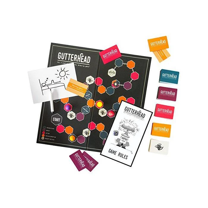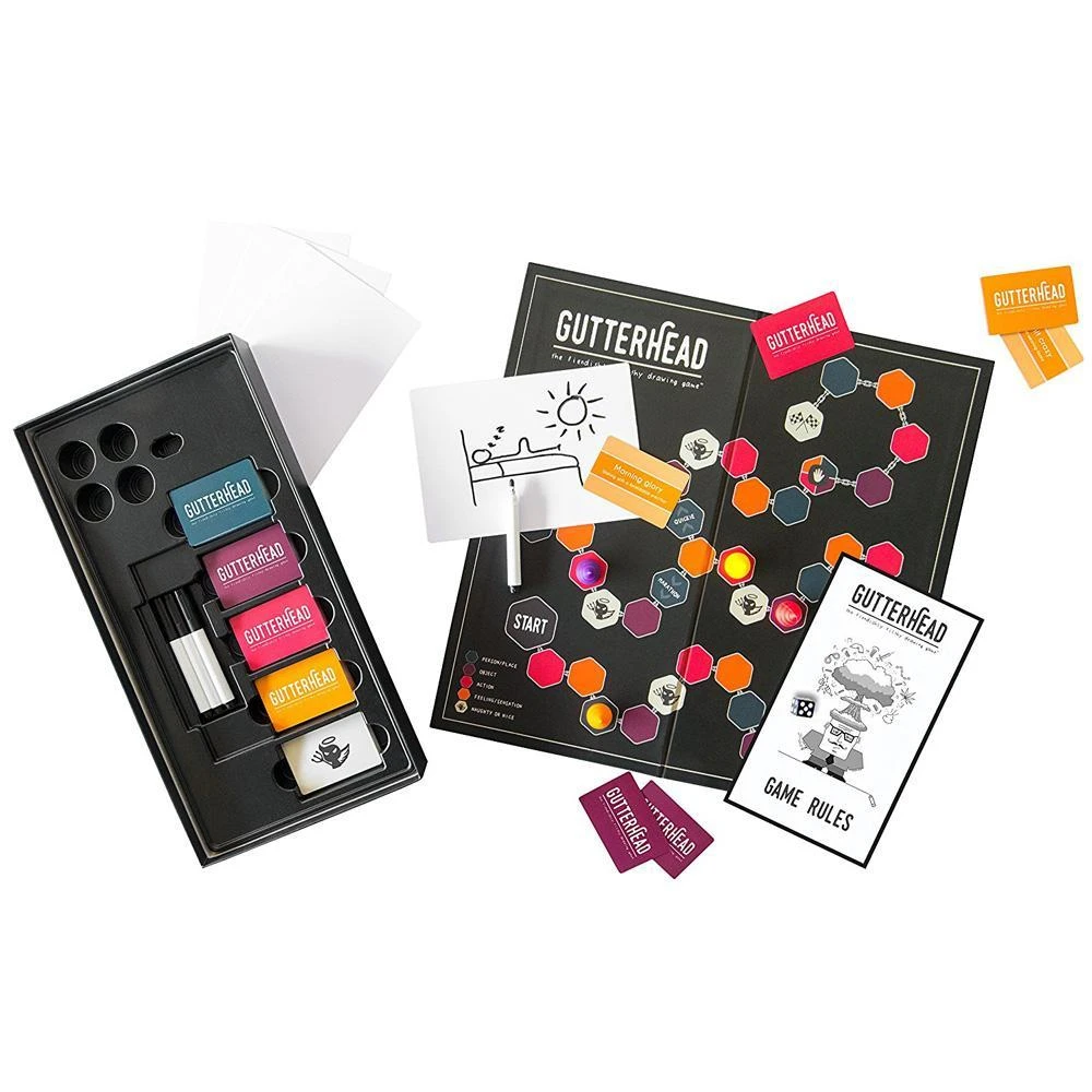 Gutterhead is the game that encourages you to put your head right down into that gutter, and play around. The bastard child of Pictionary and Cards Aginst Humanity, Gutterhead is a fun, fiendishly filthy game adults with love to win and loathe to lose!