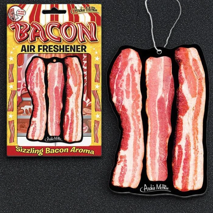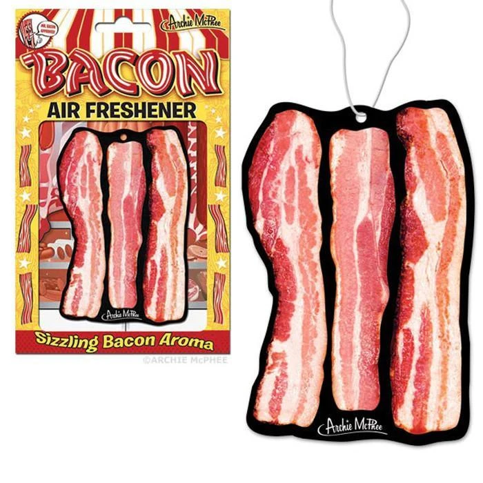 Funky Fresh air fresheners bring the aroma of sizzling bacon strips to your car. Drive with the wind in your hair, and the scent of smoked pig in your nose.