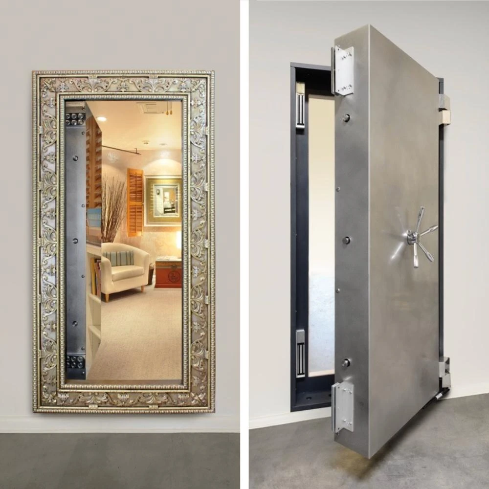 This magical mirror is far more than a stunning wall-piece. While the military-grade doorway is designed to keep the room secure against any forced attack, its brilliance lies in its concealment. It seamlessly blends into any high-end bedroom design. There is no room safer than a room that attackers or thieves don’t know exists.