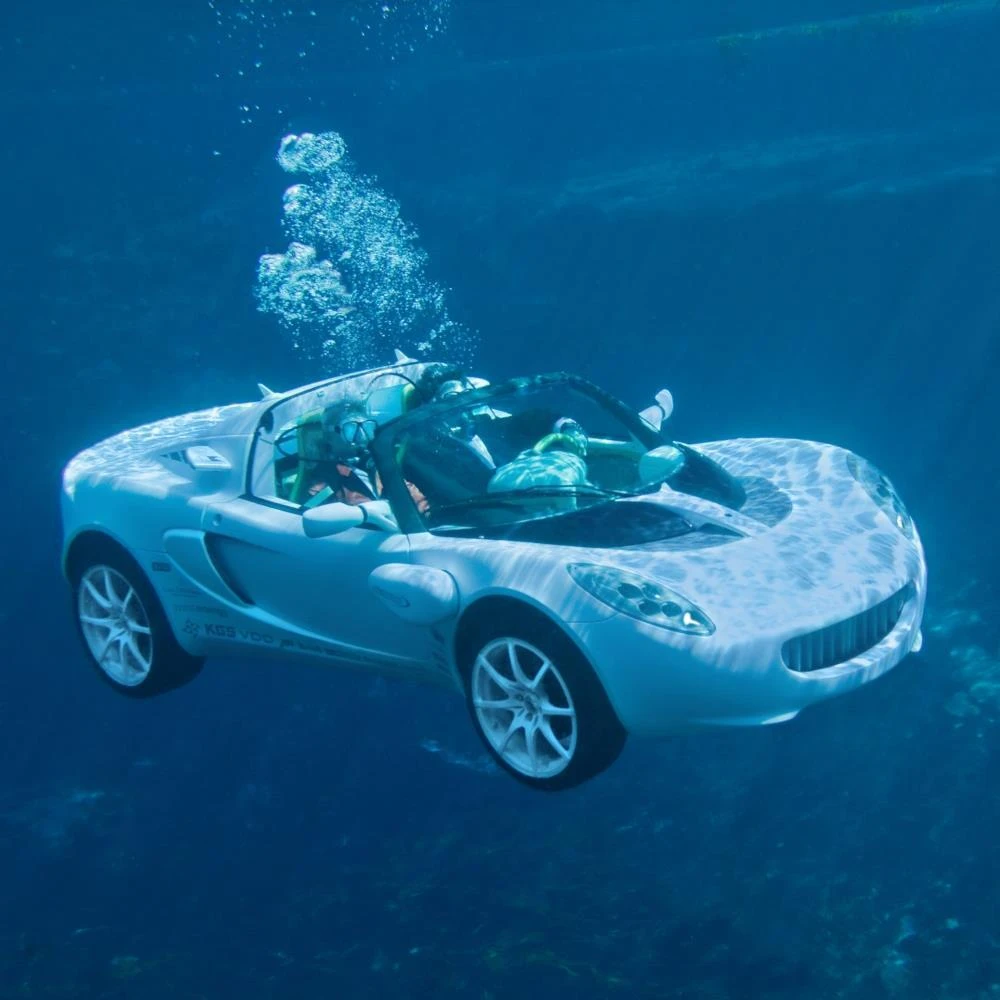 Could a Sports Car Submarine really be possible? Or only in the movies? Well, the first thing you’ll notice as you drive your Lotus into the water is – it floats. But then you crack the door and the water starts flowing in.