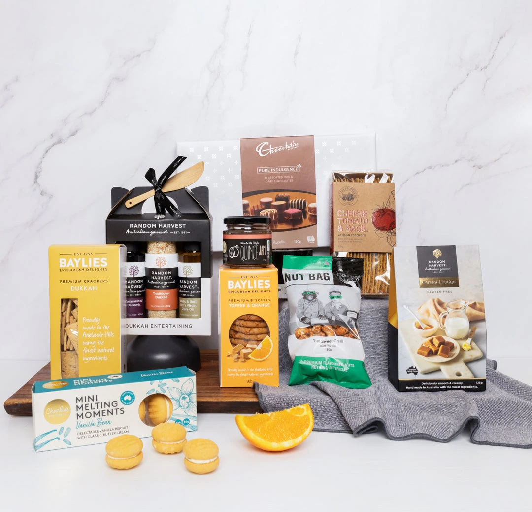It comes with a delicious Dukkah Entertainers set with traditional dukkah, caramelised balsamic and extra virgin olive oil infused with garlic and basil flavours. It will pair delightfully with the premium dukkah flavoured crackers.Â