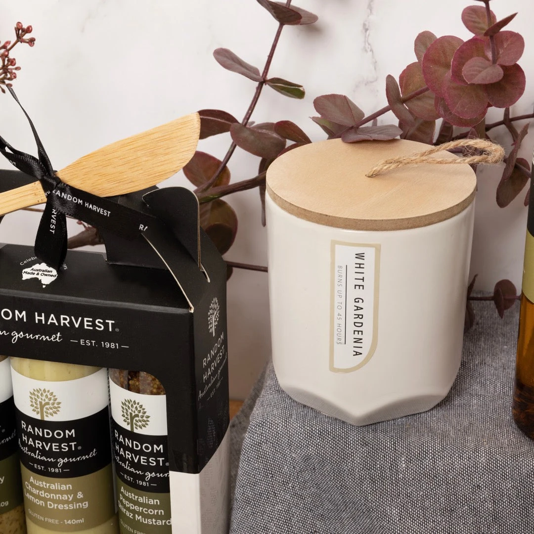 White Gardenia scented candle in a jar (45 hour burn) - Important: We do our best to stick to these exact items, however if an item is unavailable, it may be substituted for a similar product. If you need to discuss specific allergy requirements, please contact our team.