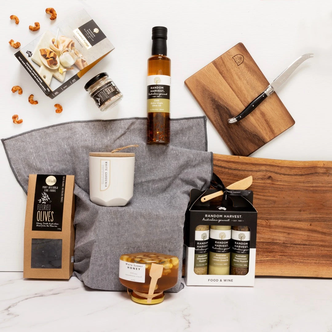 Snacks get a look in too, with rich creamy caramel fudge or delectable Thai sweet chilli cashews. Create the ultimate charcuterie board or cheese platter with juicy olives or a drizzle of raw macadamia crunch honey over some brie. You’ll even get a nice acacia wood board and a high quality French Laguiole cheese knife to help!Â