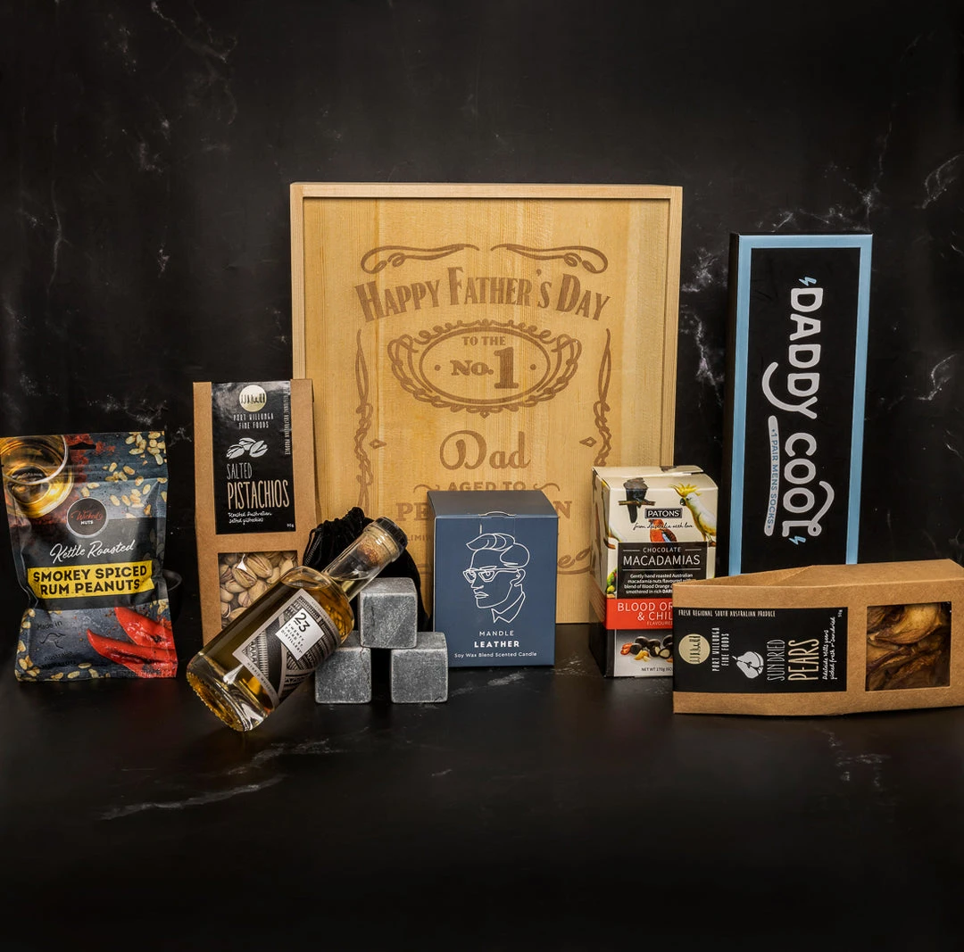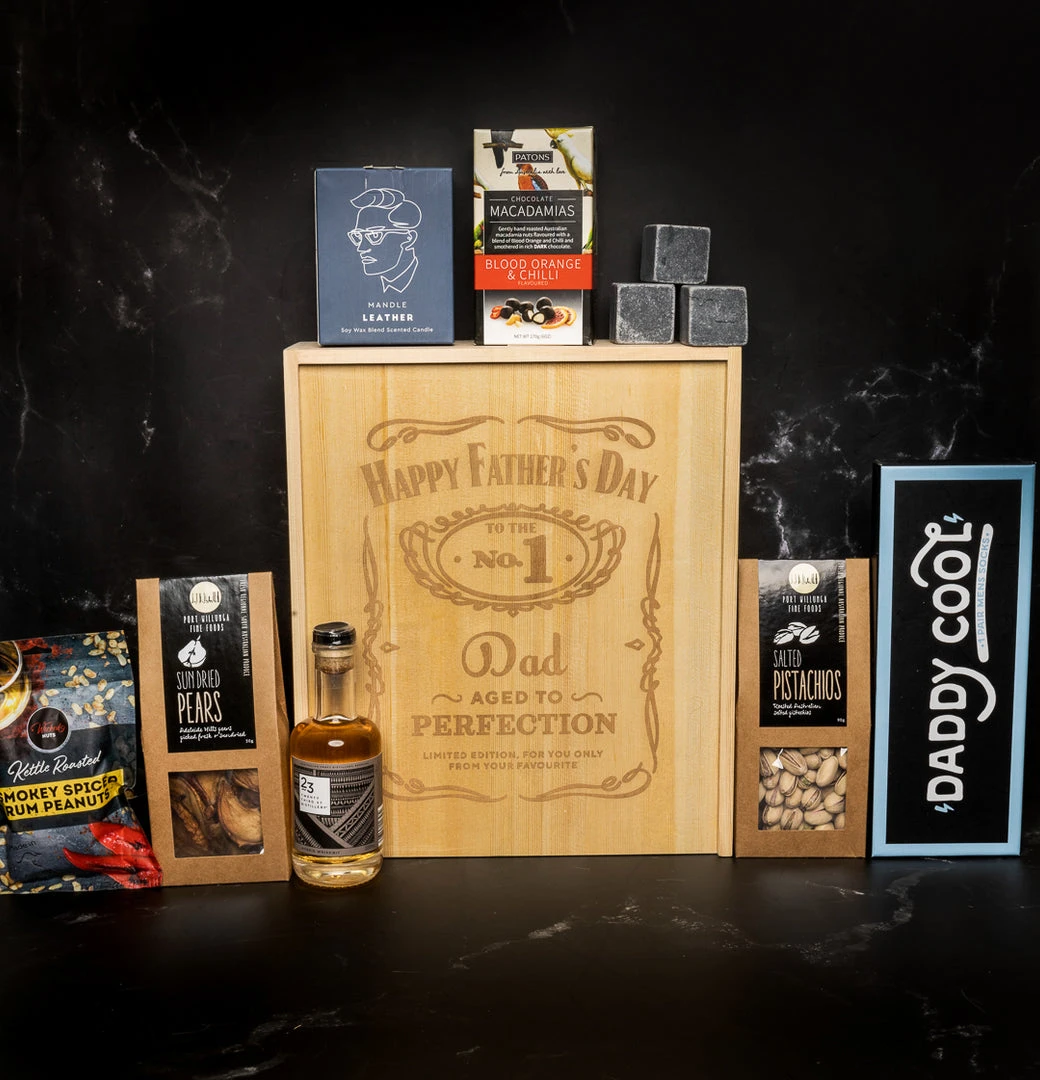 All these wonderful gifts come packaged in a customised wooden gift box! It has a design that will be familiar to whisky lovers and a sweet message. You can add Dad’s name, nickname or even address it to Grandpa.