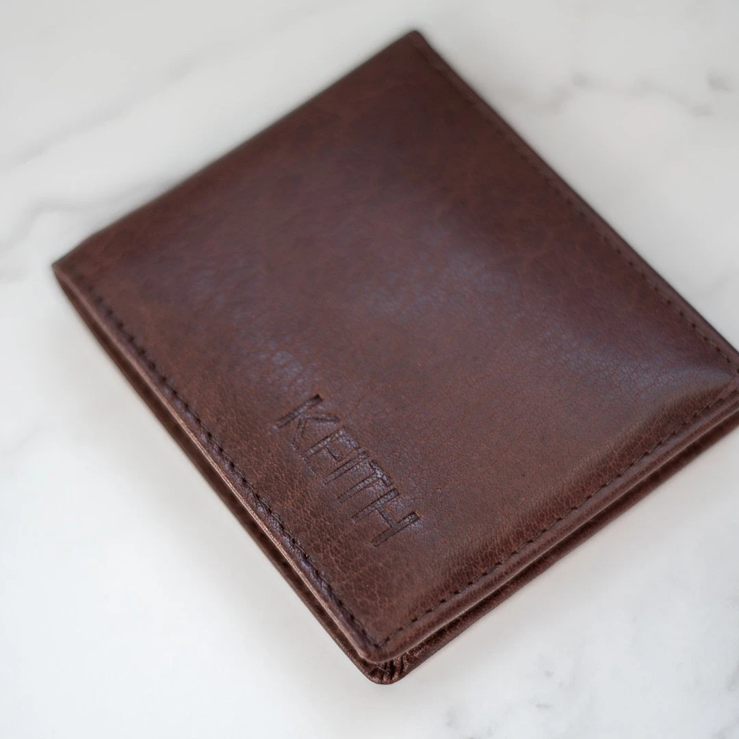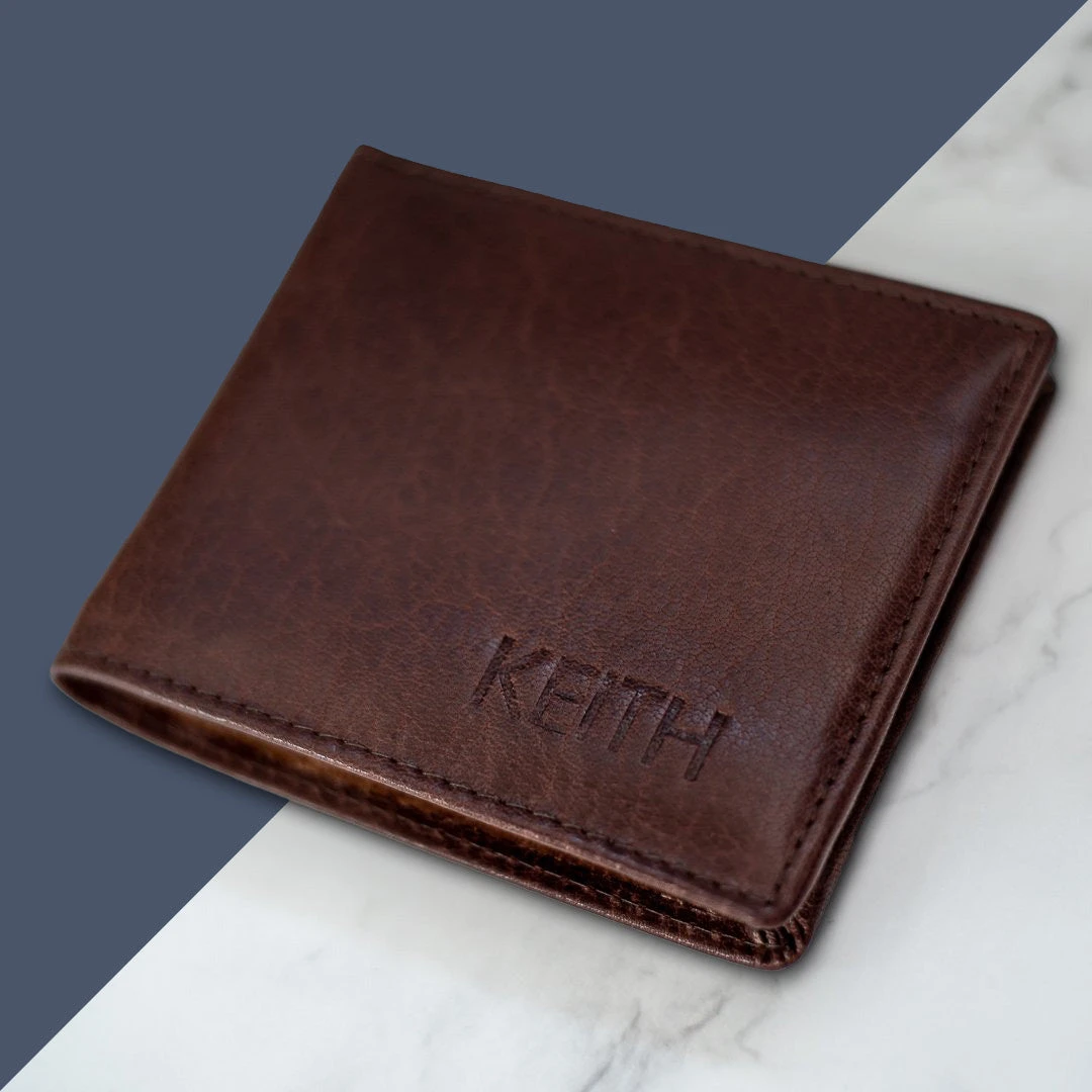 Treat that special someone to something more fitting their class and style with this impressive genuine leather wallet. The exterior is a rich reddish brown colour, like expensive brandy or mahogany. You can include their initials or name embossed in the bottom right corner to really make it theirs!