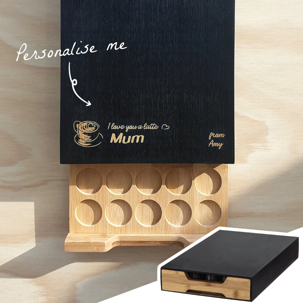 But the hardest parts of the pods is keeping them neat and tidy. This awesome coffee machine board has a handy drawer that can hold up to 40 Nespresso pods so they’re always conveniently close by! Personalise it with your recipient’s name – ‘I love you a latte <insert recipient’s name> for that special touch! You can also sign off with your name as well – ‘From <insert your name>’ but this is completely optional.