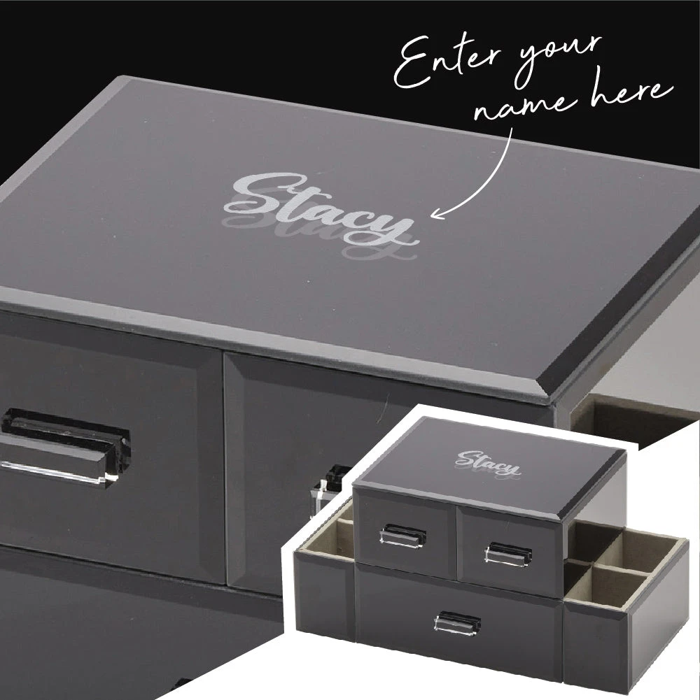 PERSONALISED BLACK VANITY JEWELLERY BOXÂ CADDY